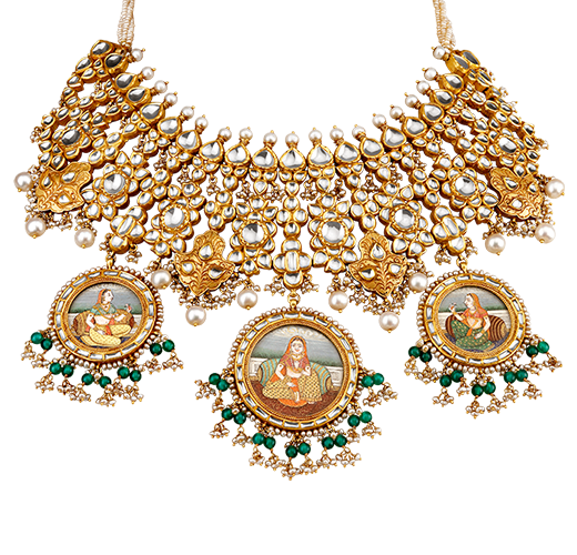 De Padmaavat-collectie van Tanishq is geweldig. De stukken zijn gemaakt van 22 karaat goud, belegd met robijnen, parels, miniatuur schilderijen en veel gedetailleerd werk. Het is een collectie met veel authentieke sieraden geïnspireerd uit de geschiedenis. Dit zijn een paar van mijn favoriete sieraden, van een raanihaar tot aan de mooie chaandbali.