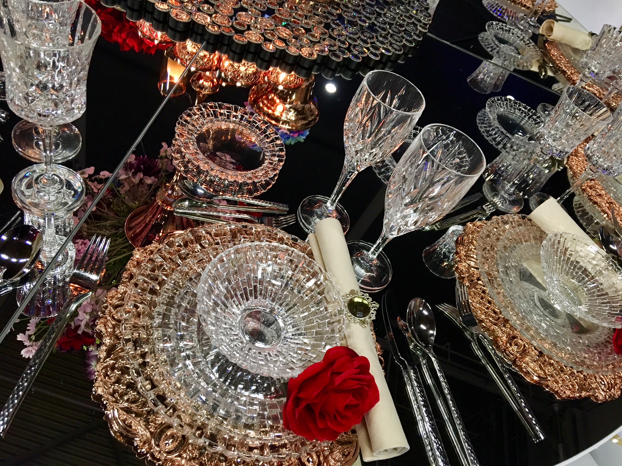 De ingang van de beurs was mooi. Aan elke zijde was er een tafelsetting met mooie opgemaakte borden, grote bloemen en prachtige kandelaars. Als het zo begint, dan komt het goed. Eenmaal binnen was ik met stomheid geslagen. Ik keek mijn zusje aan, zij keek mij aan. Een mega grote ruimte…slecht belicht… bijna geen mensen en weinig leveranciers. Ik heb er letterlijk eerst 5 minuten staan staren totdat er een meneer naar me toe kwam om te zeggen dat ik wel verder mocht lopen en dat dit de beurs was. Helemaal achteraan in de 2e hal (“2e hal??” dacht ik) vinden de modeshows plaats. We liepen een klein rondje en spraken met een handje vol leveranciers. Voor velen van hen was dit een grote teleurstelling. De nieuwe leveranciers die ik ontmoet heb waren onwijs aardig. Het was jammer dat de beurs niet aan onze verwachtingen voldeed.